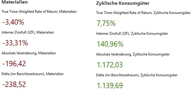 In einem positiven Marktumfeld haben nur die Wirtschaftssektoren Immobilien (-2,78%) und Materialien schwächer als im Vormonat abgeschlossen, wobei es bei den Materialien den größeren Verlust gab. Die Liste der Sektoren mit positiver Entwicklung führt der Sektor Zyklische Konsumgüter an: